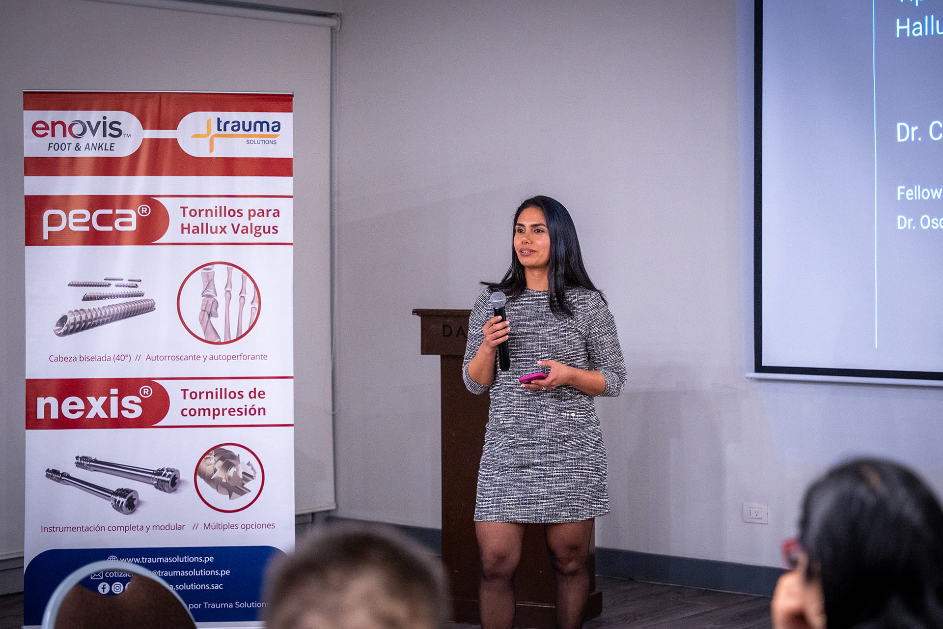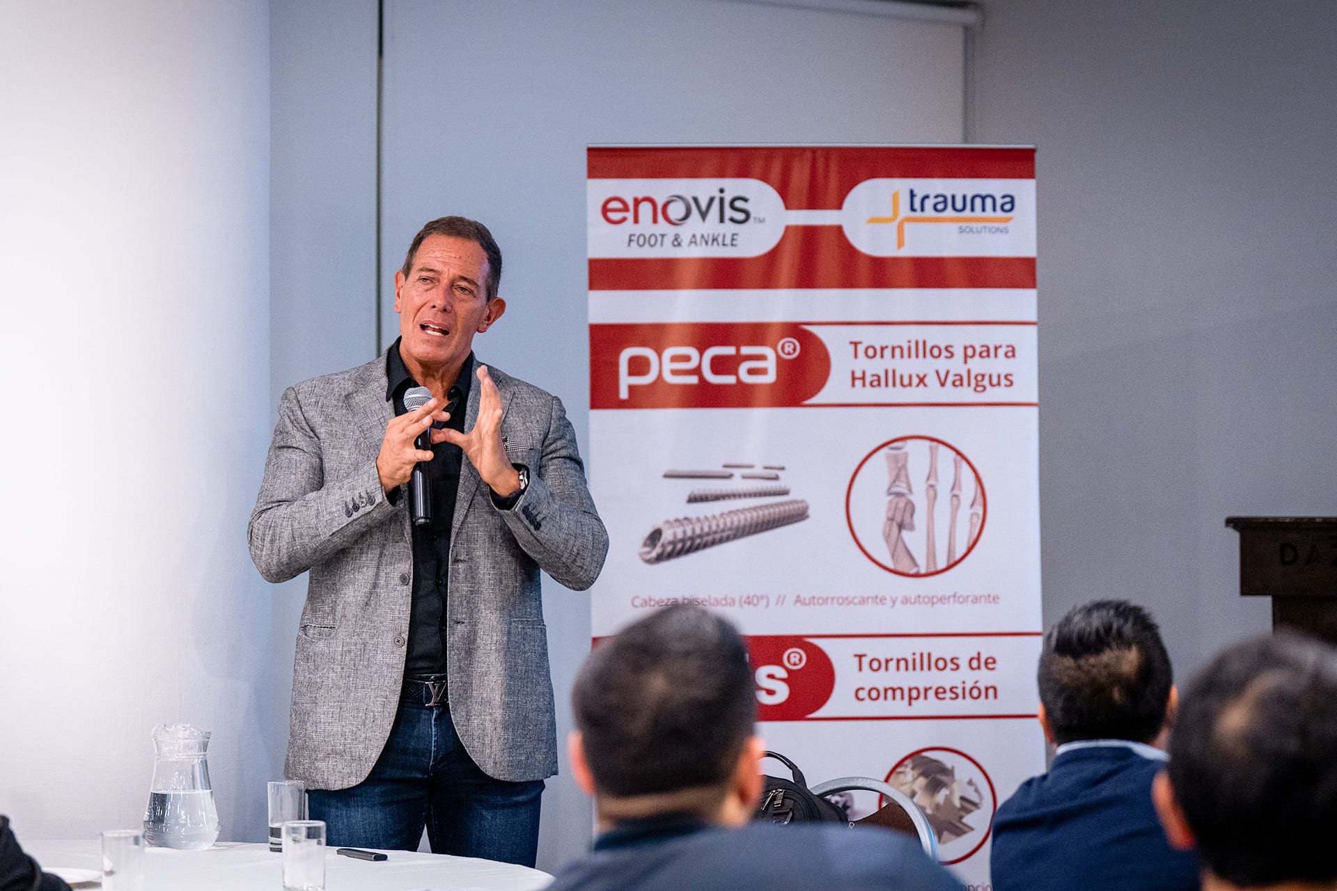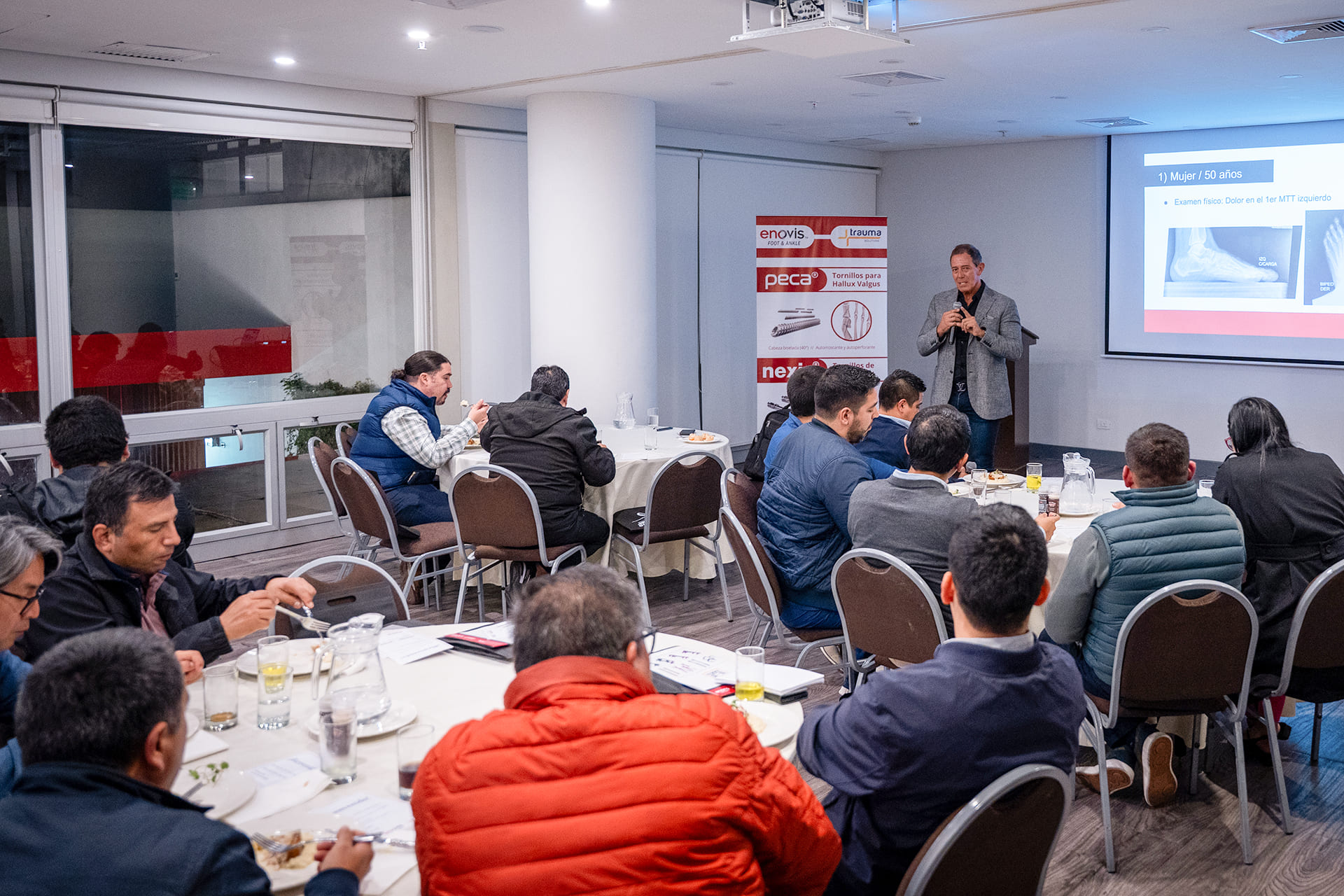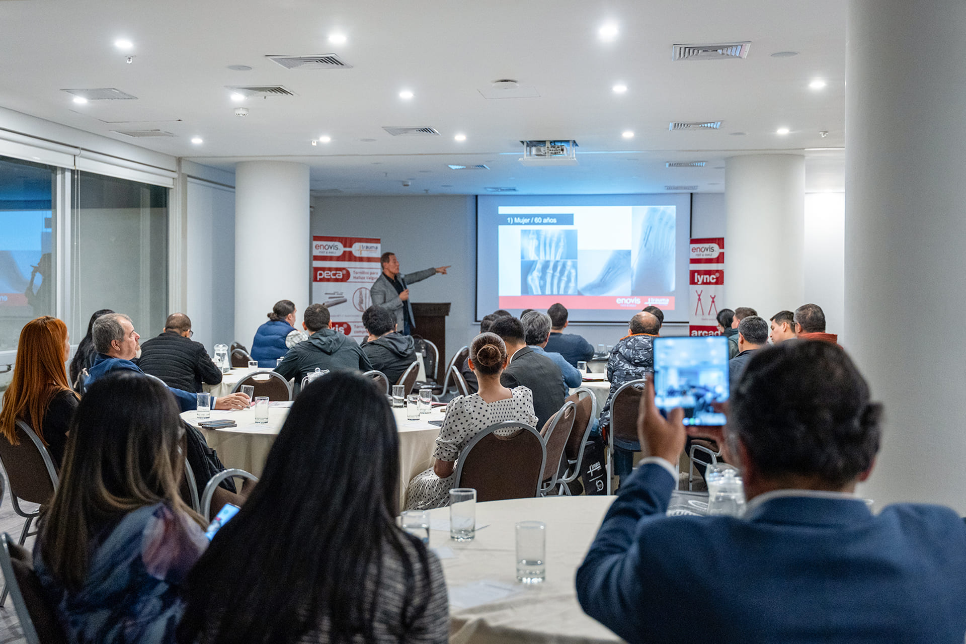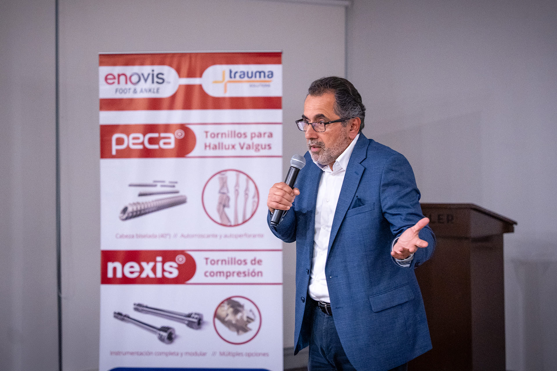 El reconocido traumatólogo cirujano chileno, el Dr. Cristian Ortiz, lideró una discusión de casos clínicos de cirujanos locales de pie y tobillo sobre corrección mínimamente invasiva del Hallux Valgus o juanete con el uso de nuestro tornillo para cirugía mínimamente invasiva: «Peca».