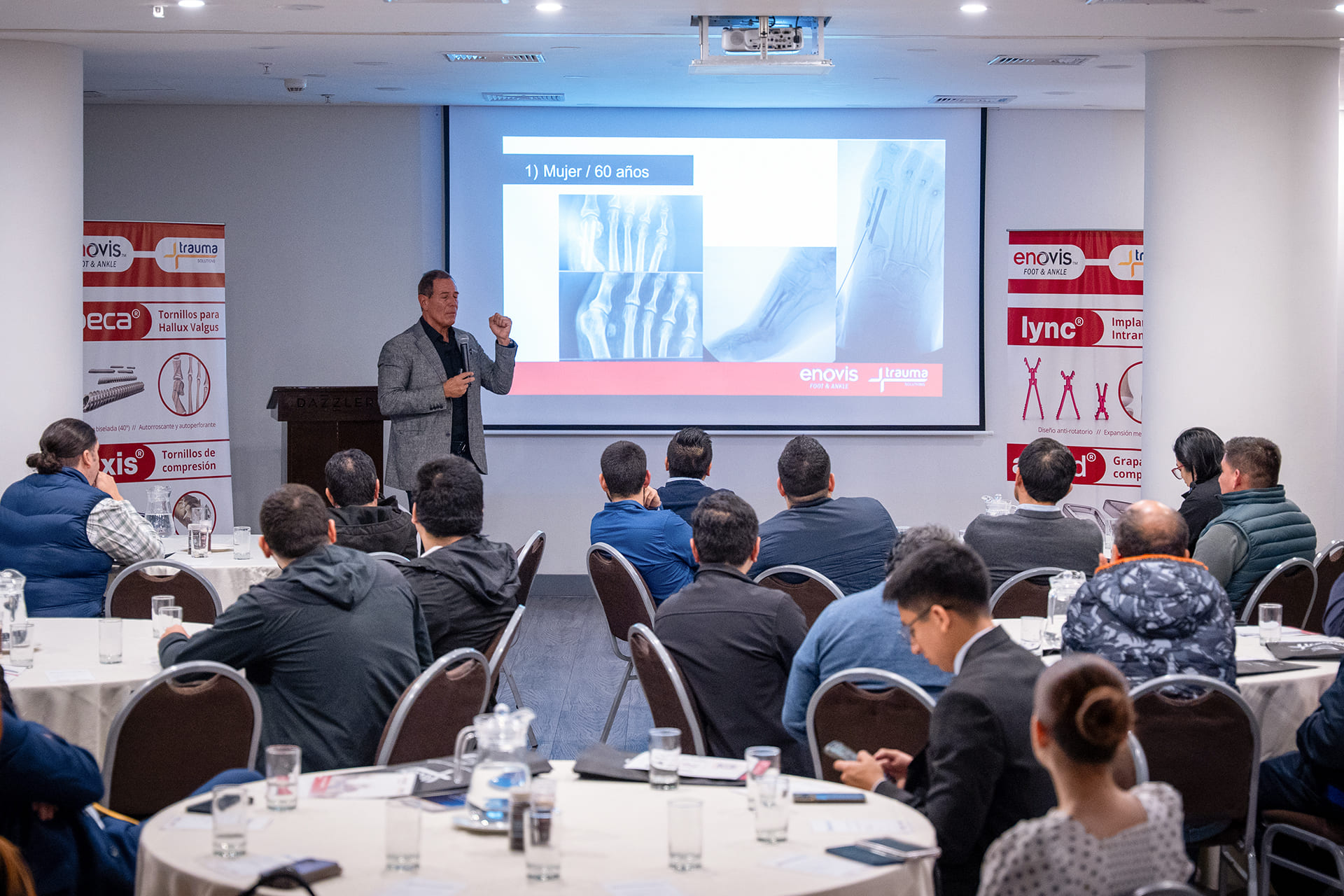 Asimismo, presentó el portafolio de implantes de Enovis Foot & Ankle y sus respectivas indicaciones: